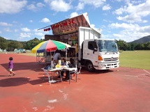 ![]() トラック特有のサスペンションによるステージの上下の沈み込みは4ケ所のアウトリガー(揺れ防止器具)によりありません。 |